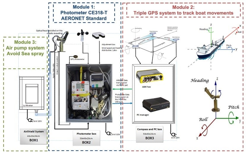 The instrument, a CIMEL CE318‑T, was specially adapted for shipborne deployment. Engineers stabilized it against vessel motion, added protective enclosures to withstand sea spray, and updated the firmware to maintain accurate sun-tracking and sky radiance measurements. Calibrations were aligned with AERONET protocols, ensuring the data matched the rigorous standards of land-based sites.