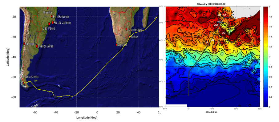 Aboard the RV Marion Dufresne, the photometer captured aerosol characteristics along a route stretching from the tropical Atlantic, across the Intertropical Convergence Zone (ITCZ), and into the mid-latitudes. The ship crossed the ITCZ three times, recording interactions between Saharan dust, marine aerosols, and cloud systems. Over the three-year period, the dataset revealed patterns of episodic dust transport, background sea-spray, and long-range aerosol variability.